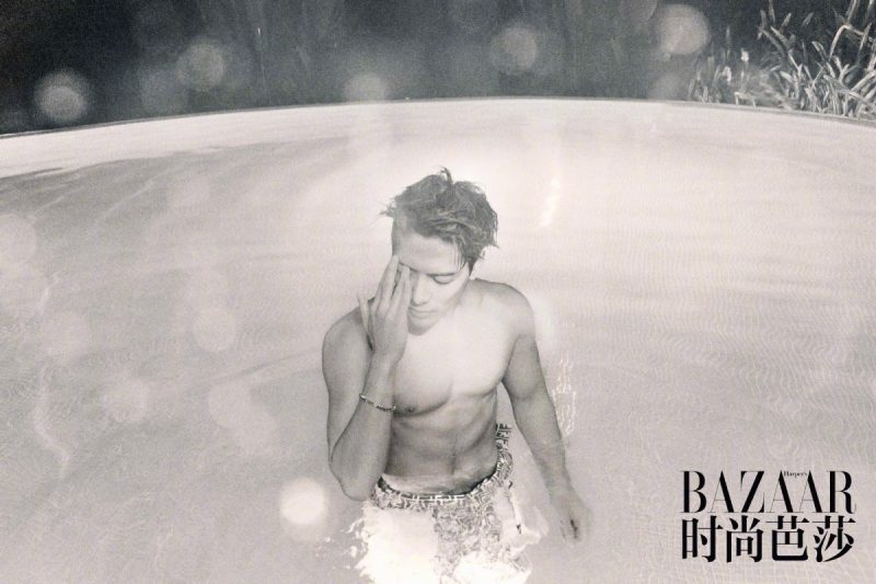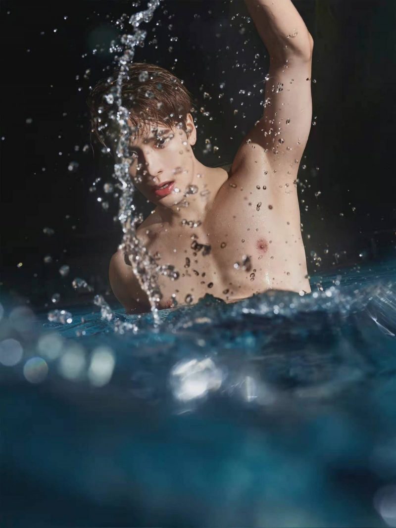 《时尚芭莎》拍摄的水中大片大获好评,王嘉尔半裸露出紧实的肌肉线条,把完美好身材展现得淋漓尽致,简直就是行走的荷尔蒙!