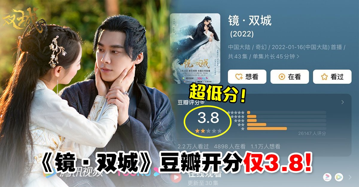 由李易峰、陈钰琪领衔主演的古装奇幻剧《镜·双城》目前正热播中,近日该剧在豆瓣开分获3.8,出乎意料的低分引发网友讨论!
