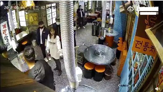从曝光的餐厅闭路电视画面中看到,龚俊身后跟着几名工作人员,而钟楚曦则走在最后面。只见龚俊脱下口罩问道:“我们不会被拍吧?我怕被拍”,钟楚曦听后回应:“我们坐这边拍不到,现在青岛不让堂食”