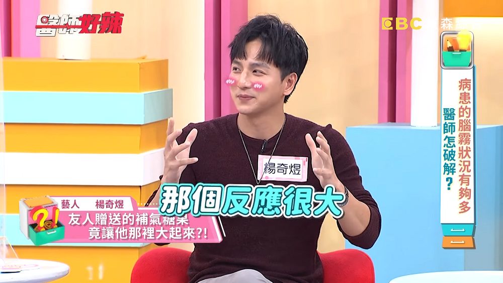 小煜近日在节目《医师好辣》上透露,曾经有个朋友送给他马来西亚的糖果,称是可以养生补肝、补气血,他一吃觉得有人参味蛮好吃的,隔天起床又再吃了1颗,没想到过了3、4小时开始全身酸痛,尤其是腰部最痛,甚至请人推拿按摩都无效,上网查了之后,才发现竟然是壮阳糖果。