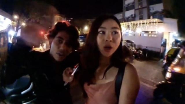 从网路上疯传的影片中,2名男子在Mhyochi直播时上前搭讪,其中1男不停伸手骚扰正妹,还把手搭在她肩上,嘴唇靠近她的颈部试图趁机亲吻。男子接着一把抓住她的手臂将她拉到一旁,想邀她上车顺路接送,尽管Mhyochi连忙用英文说道“我们要去哪?”、“不要不要不要”,但2人似乎言语不通,男子再次搭着她的肩膀,试图亲吻第二次,还发出“啵”的一声,令她当场吓得花容失色。