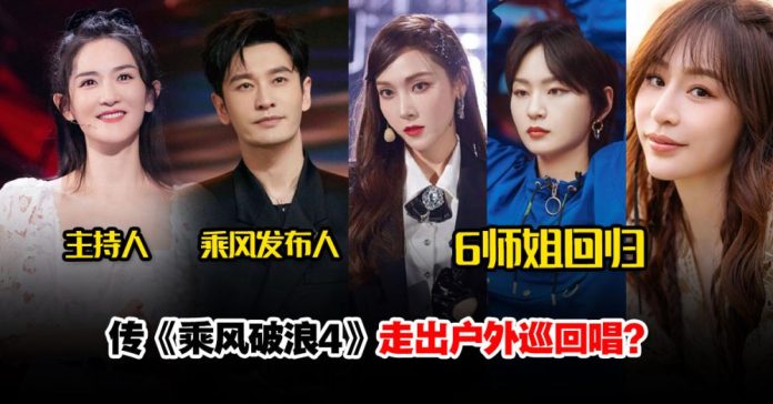 中国选秀综艺节目《乘风破浪》自开播以来,就引起超高的讨论度!近期有消息指《乘风破浪4》将易名为《乘风而上》,并以户外巡唱的方式进行,甚至有爆料称张雨绮、王心凌、周笔畅、郑秀妍(Jessica)等6位师姐将回归!
