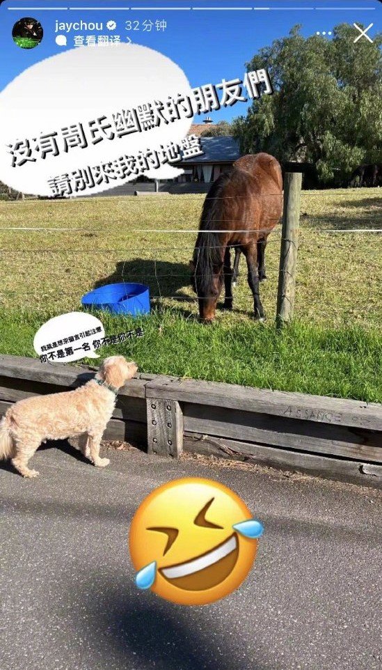 对此,周杰伦隔天在Instagram限时动态晒出狗对着戴皇冠的马吠叫的照片,回呛:“因为高处不胜寒!在圈子这么久了,总是有在吠的,不过第一名而已,有什么呢?对吧?”,随后还对酸民下起逐客令:“没有周氏幽默的朋友们,请别来我的地盘。” 更为狗设计对白:“我就是想来留言引起注意,你不是第一名,你不是你不是”,暗讽网民是狗乱在吠。