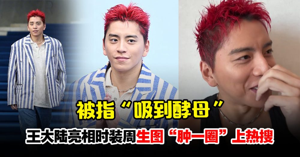 照片中,王大陆顶着一头鲜艳的红发,身穿蓝白色宽直条纹西装外套、牛仔裤和帆布鞋的造型登场,这身穿搭被韩国媒体用“樱木花道”来形容他,甚至有人调侃他是不是得罪造型师了。