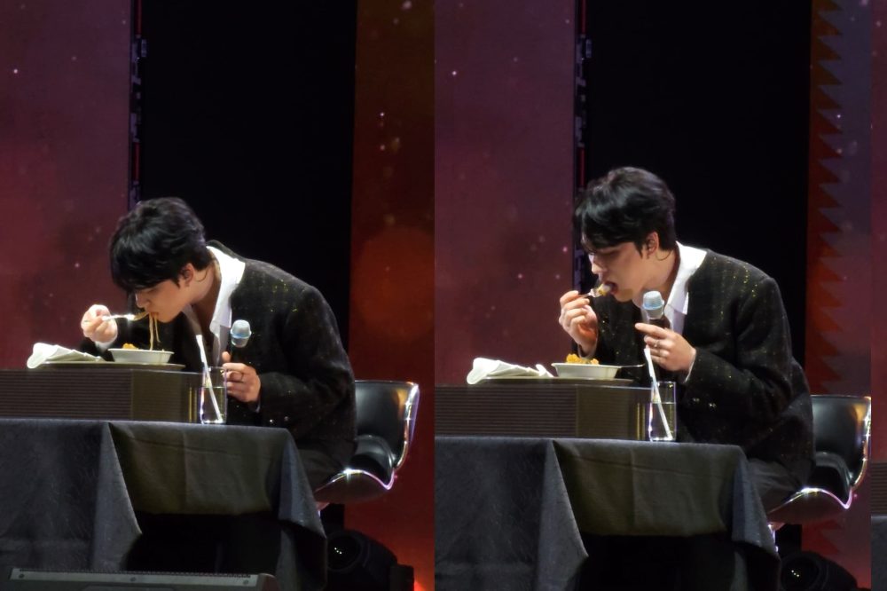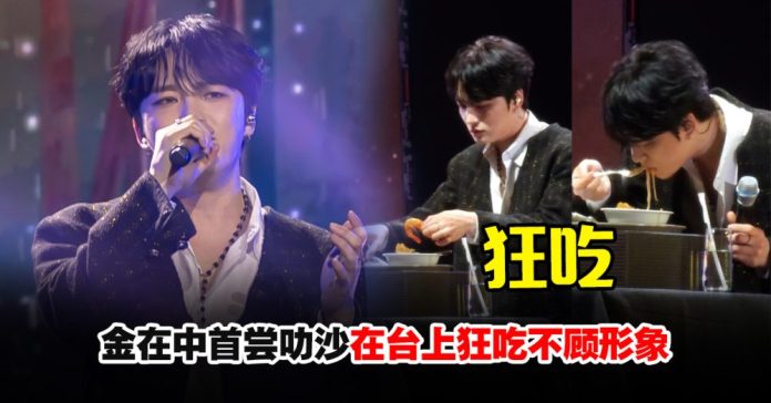 金在中还在现场品尝大马美食“叻沙”,吃的津津有味的他甚至顾不上与主持人接话,也让台下粉丝开玩笑问“是饿了多久?”。吃过之后金在中将叻沙形容和“和泡菜味道差不多”,结果遭到粉丝一致反对大喊“不像”。随即他又表示,“不管这是什么,但它确实很好吃,我觉得喜欢吃辣的韩国人一定会喜欢。”