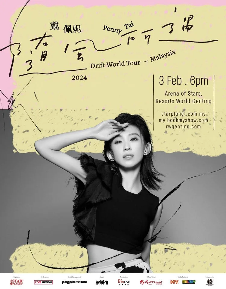 由Star Planet 星艺娱乐主办,Live Nation 协办的戴佩妮《随风所遇》巡回演唱会– 马来西亚站2024,将于2024年2月3日,傍晚6点,于云顶世界云星剧场举行,购票详情可浏览 starplanet.com.my / my.bookingmyshow.com /rwgenting.com 或拨电:+ 603-9223 3667/9212 4202洽询。