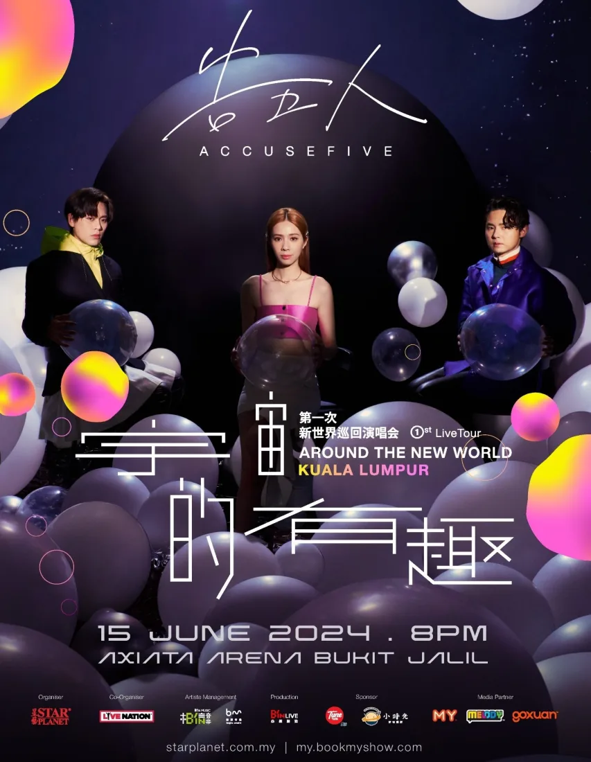 由STAR PLANET星艺娱乐主办,Live Nation协办,《告五人第一次新世界巡迴演唱会【宇宙的有趣】》马来西亚场的演唱会门票,将于4月4日,中午12点开始,正式全面公开发售。 更多相关详情,请游览 www.starplanet.com.my 和 my.bookmyshow.com。