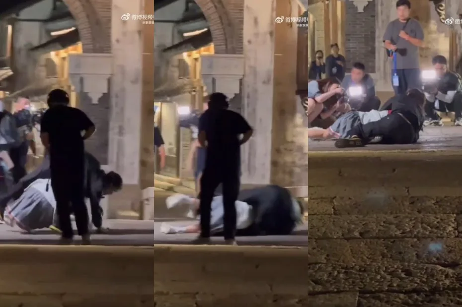 据曝光的画面可见,56岁的那英穿着短裙录制《萌探2024》,在追逐过程中不慎遭武打影星向佐扑倒,整个人一度起不了身,两只脚也不知觉地蜷曲起来,而倒在那英身上的向佐也没有马上爬起。