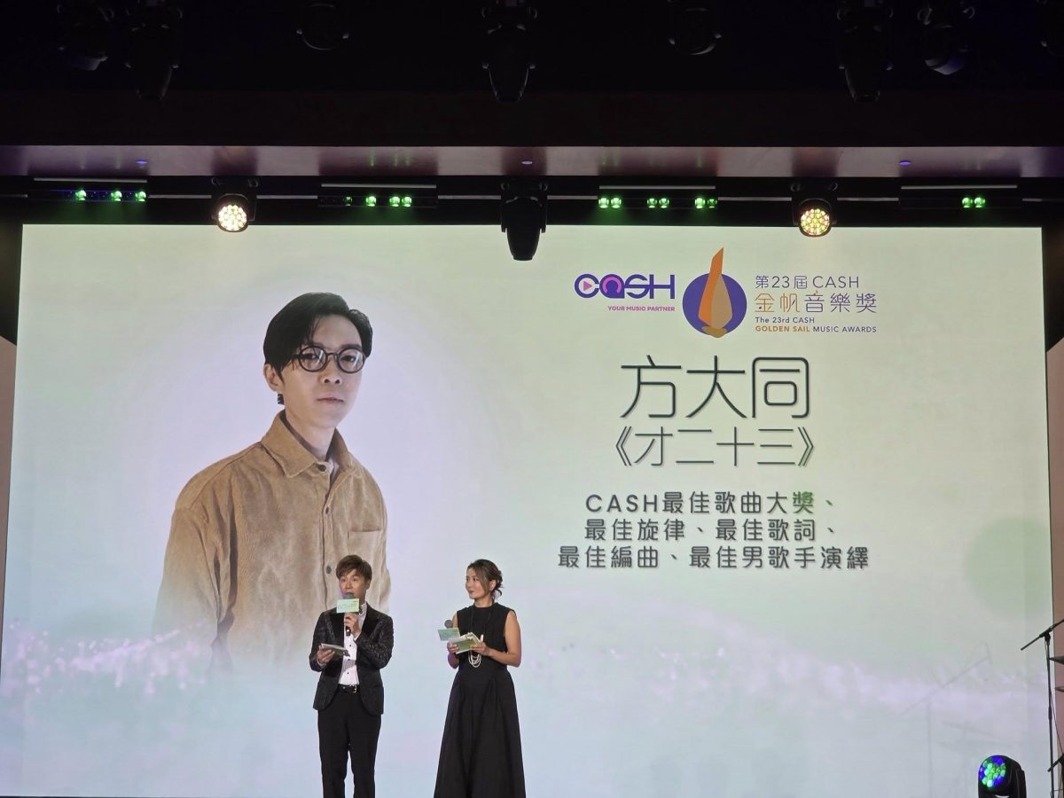 方大同凭《才二十三》横扫“CASH最佳歌曲大奖”、“最佳男歌手演绎”、“最佳旋律”、“最佳歌词”及“最佳编曲”5个奖,成为历届夺最多奖项的音乐人。两位表姐在台上感谢评审团的肯定及各界对方大同的支持与怀念,并透露《才二十三》创作于方大同人生最艰难的阶段,“希望透过歌词同旋律感动人心,也希望他在另一个维度都能透过音乐继续带给大家力量,让大家反思人生的意义。”