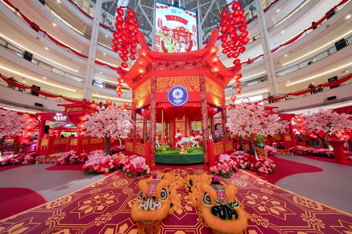 马年将至,吉隆坡城中城阳光广场(Suria KLCC)为迎接农历新年,将中庭打造成沉浸式东方年节美景,以象征新年活力的“骏马旋转木马”为主视觉,从即日起至2月18日,邀民众亲临打卡,欢庆佳节。