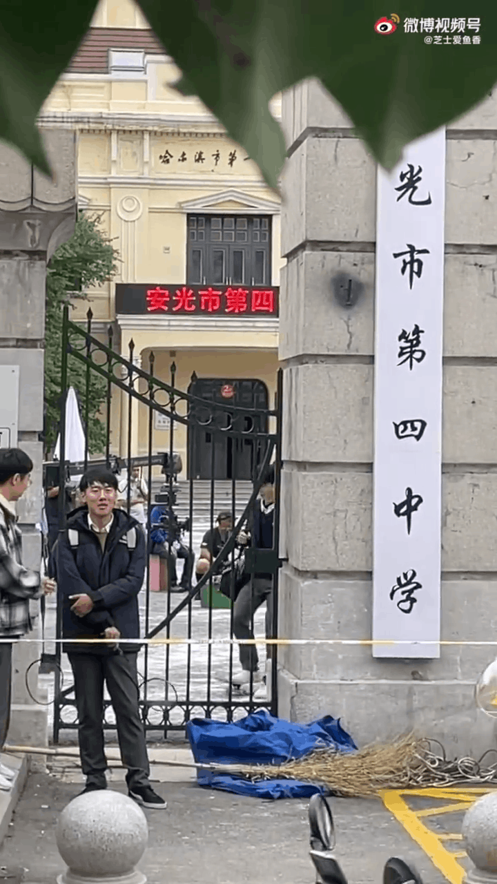 动图中可见,“福西西”范丞丞身穿高中校服,背着单肩挎包、脚踩着滑板进入学校,而妹妹王圣迪则在他身后追赶着,这滑板该不会是“顾淼”的吧?