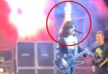 美国某摇滚乐团近日在爱荷华州苏城演出,正当群众情绪正亢奋时,主唱头发遭后方施放烟火特效点燃,火势迅速延烧,后脑勺顿时成了火球,吓得一旁吉他手连忙靠过来试图灭火。