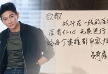 吴奇隆手写祝福 邀小虎队接力声援防疫